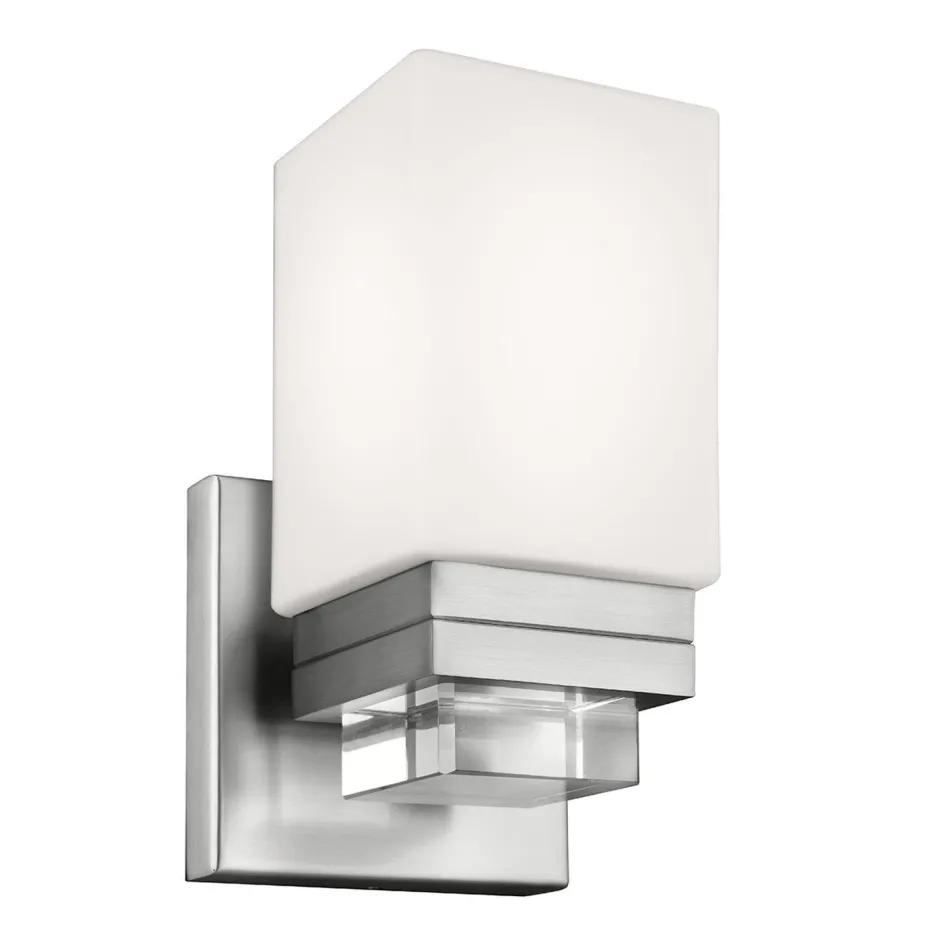 Das Licht wird durch den satinierten Glas Lampenschirm blendarm gestreut und sorgt für eine angenehme Beleuchtung