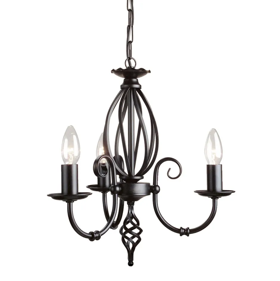 Drei kunstvoll geschwungene Arme sowie harmonisierende Zierelemente machen Pendelleuchte zu einem dekorativen Blickfang