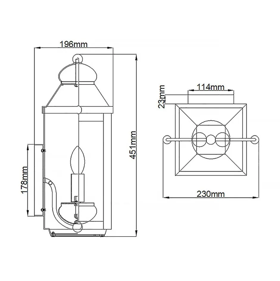Die Wandlampe besticht durch die eleganten Details und die verwitterte Farbe, die den Eindruck einer antiken Wandlaterne erwecken – ein dekorativer Blickfang an jeder Fassade