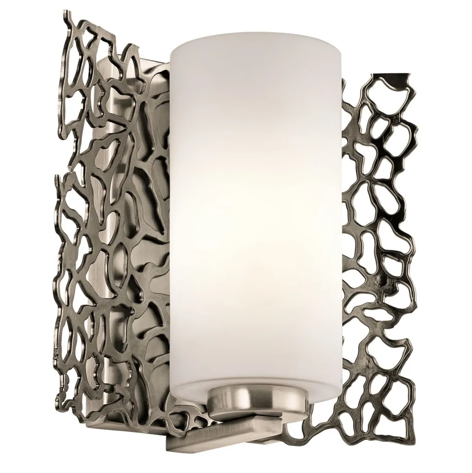 Das Geflecht erinnert an Korallen und macht aus der Wandlampe einen dekorativen Blickfang
