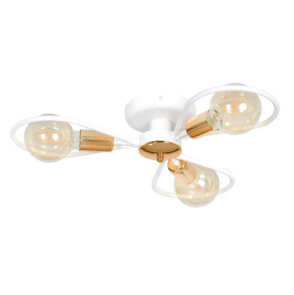 Die Schleifen aus weißem Metall umrahmen das Leuchtmittel und erinnern an Propeller