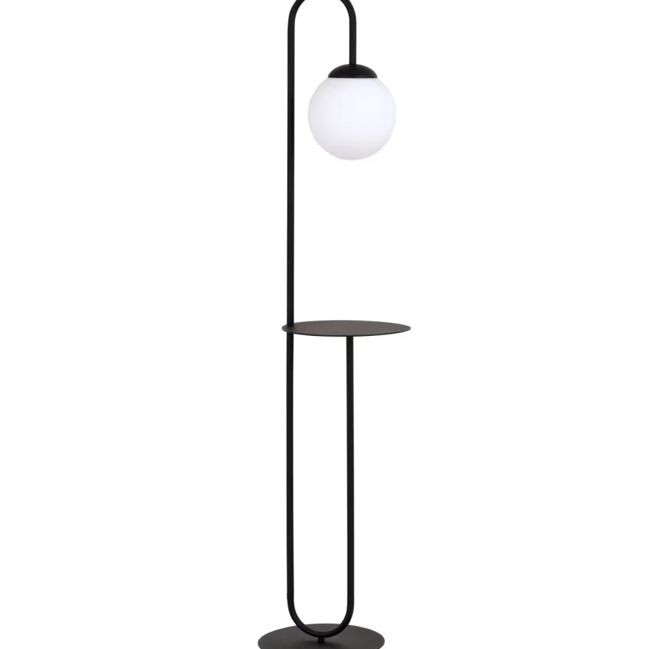 Elegante Stehlampe mit Ablage und dekorativem Kugelschirm aus Glas