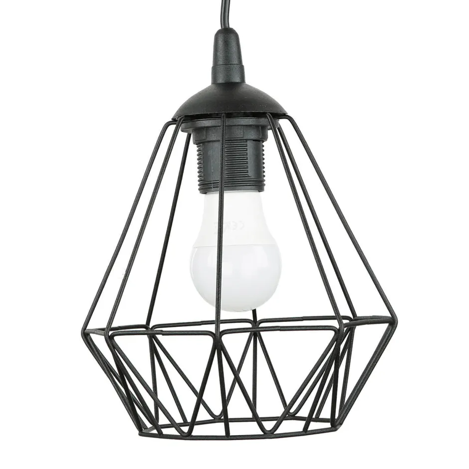 Dekorative Pendelleuchte mit Draht Schirm in Schwarz