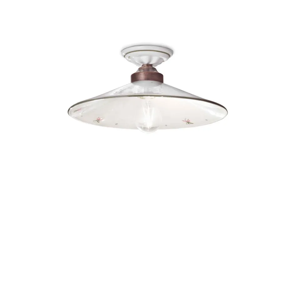 Kleine Keramik Deckenleuchte im rustikalen Landhaus Stil mit kunstvoll verziertem Lampenschirm