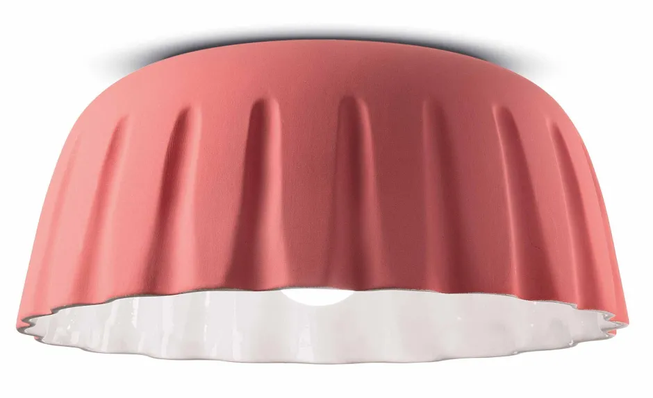 Elegante Deckenleuchte aus massiver Keramik in hellem Korallenrot