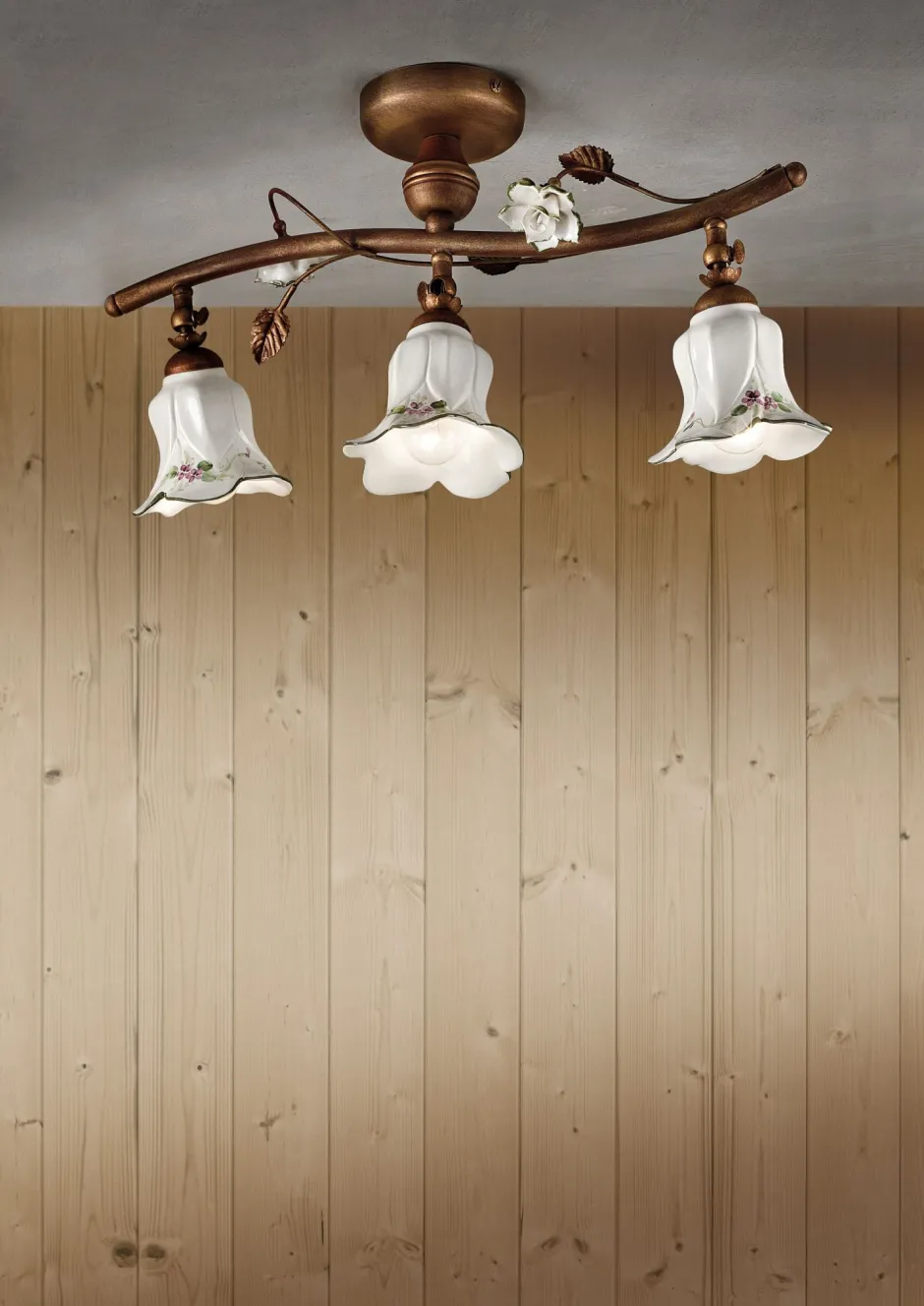 Filigrane Blüten und Blätter unterstreichen das romantische Design und verleihen der Keramikleuchte einen antiken Charakter – ein echter Blickfang in Wohnzimmer, Küche und Flur