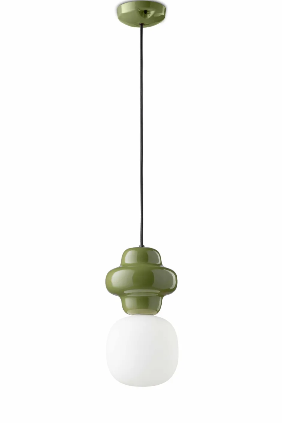 Ferroluce Hängelampe Glas Keramik E14 Grün Weiß Retro< Wohnzimmerlampen|Glaslampen