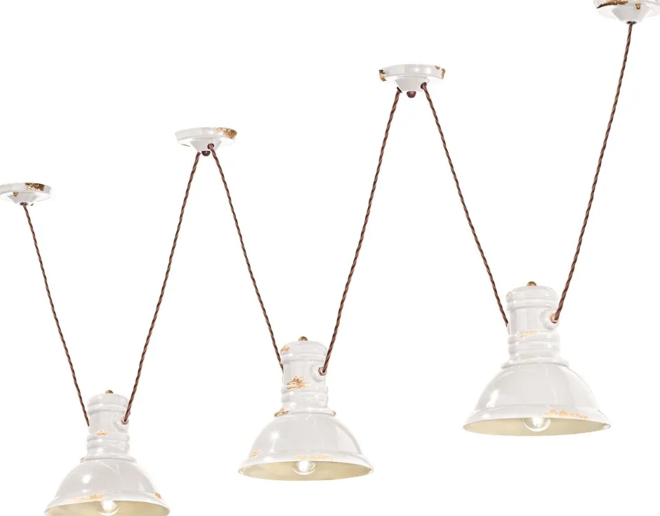 Flexibel verstellbare Pendelleuchte mit Keramik Lampenschirm in Weiß