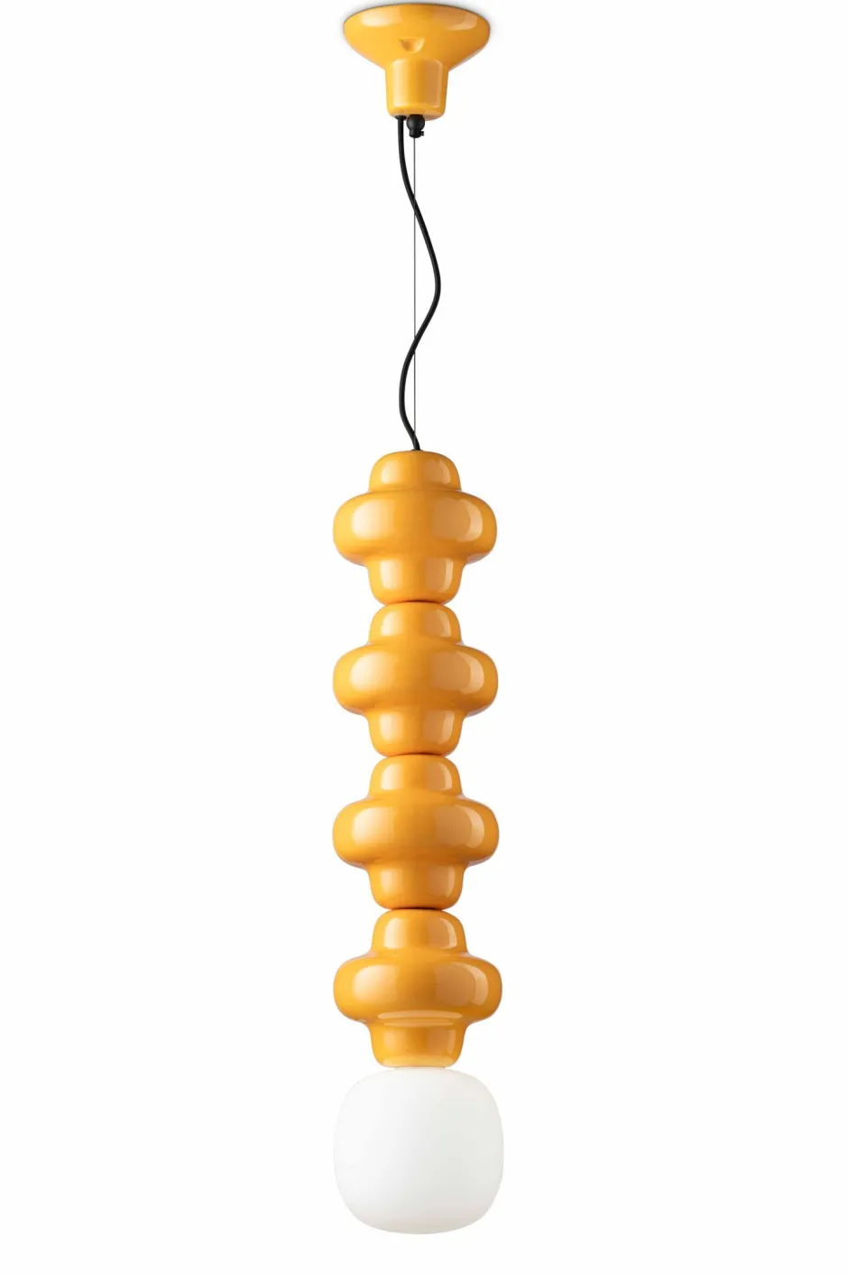Die außergewöhnliche Form und das kräftige Gelb machen aus der Hängelampe einen absoluten Blickfang in Wohnzimmer, Esszimmer und Küche
