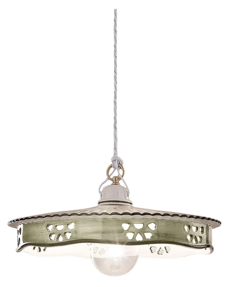 Der kunstvoll gestaltete Schirm mit seinen Öffnungen und dem zarten Grün setzt einen dekorativen Akzent in jedem Raum, was die Hängelampe zu einem echten Blickfang macht