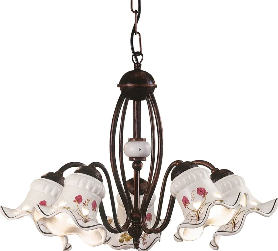 Ferroluce Hängeleuchte Metall Keramik E14 5-flammig Landhaus Stil< Wohnzimmerlampen|Keramiklampen