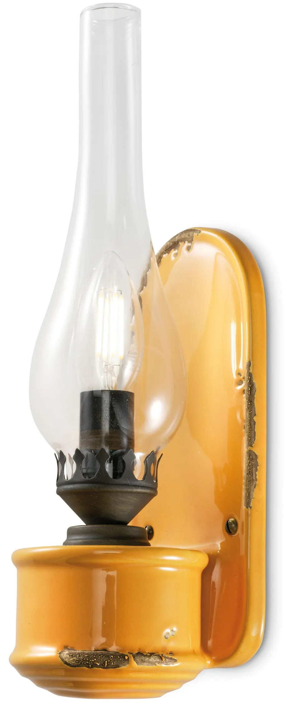 Edle Wandleuchte aus Keramik und Glas im Stil einer antiken Petroleumlampe