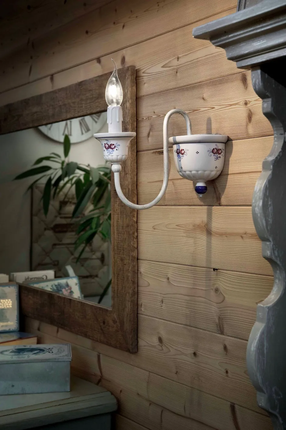Das von Hand gemalte, florale Dekor macht aus der Wandlampe einen dekorativen Blickfang, der in jedem Raum perfekt zur Geltung kommt