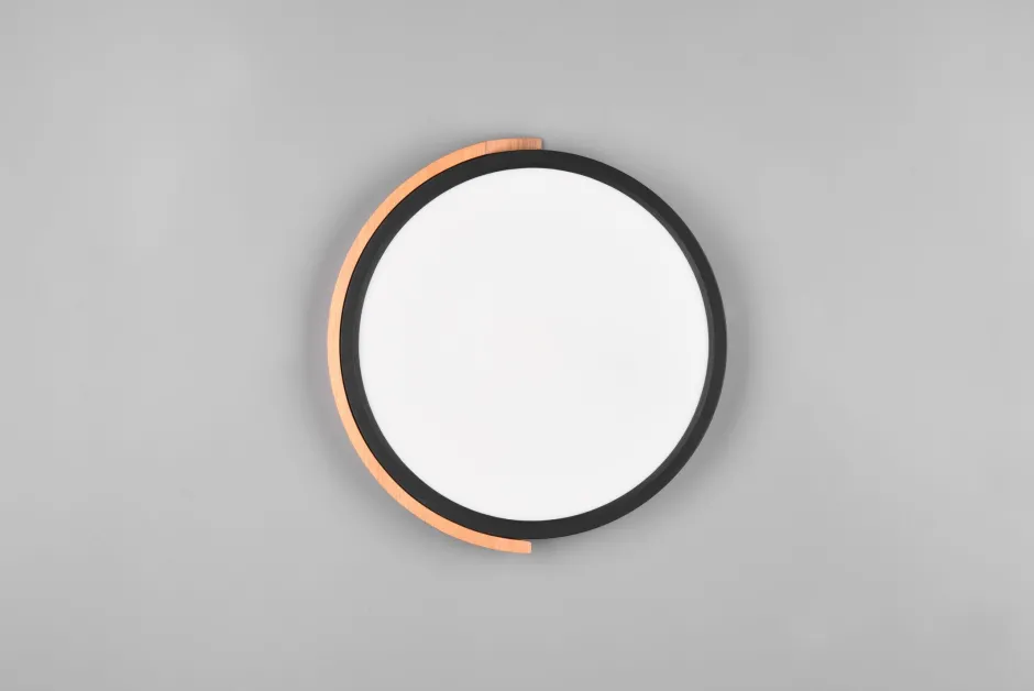 Skandinavische LED Deckenleuchte aus Holz und Kunststoff in Schwarz