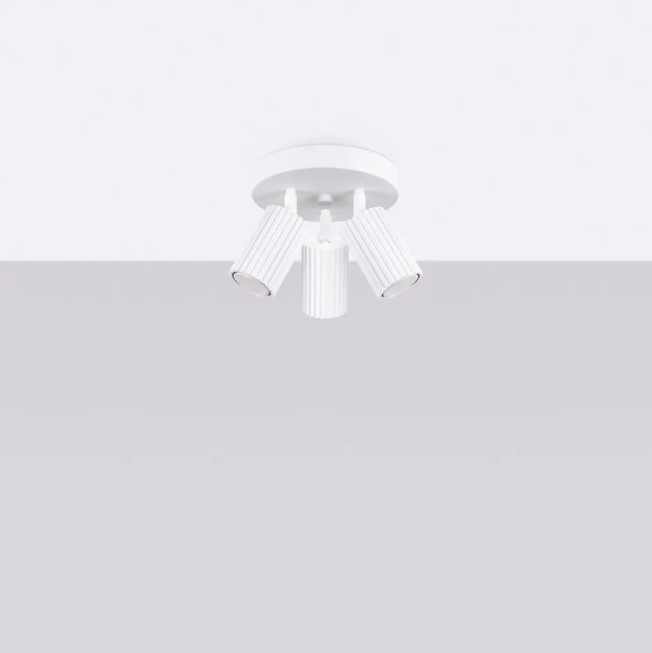Kleiner Deckenstrahler aus Aluminium in dezentem Weiß