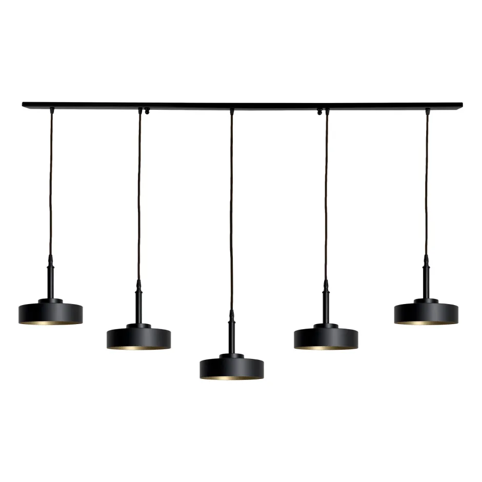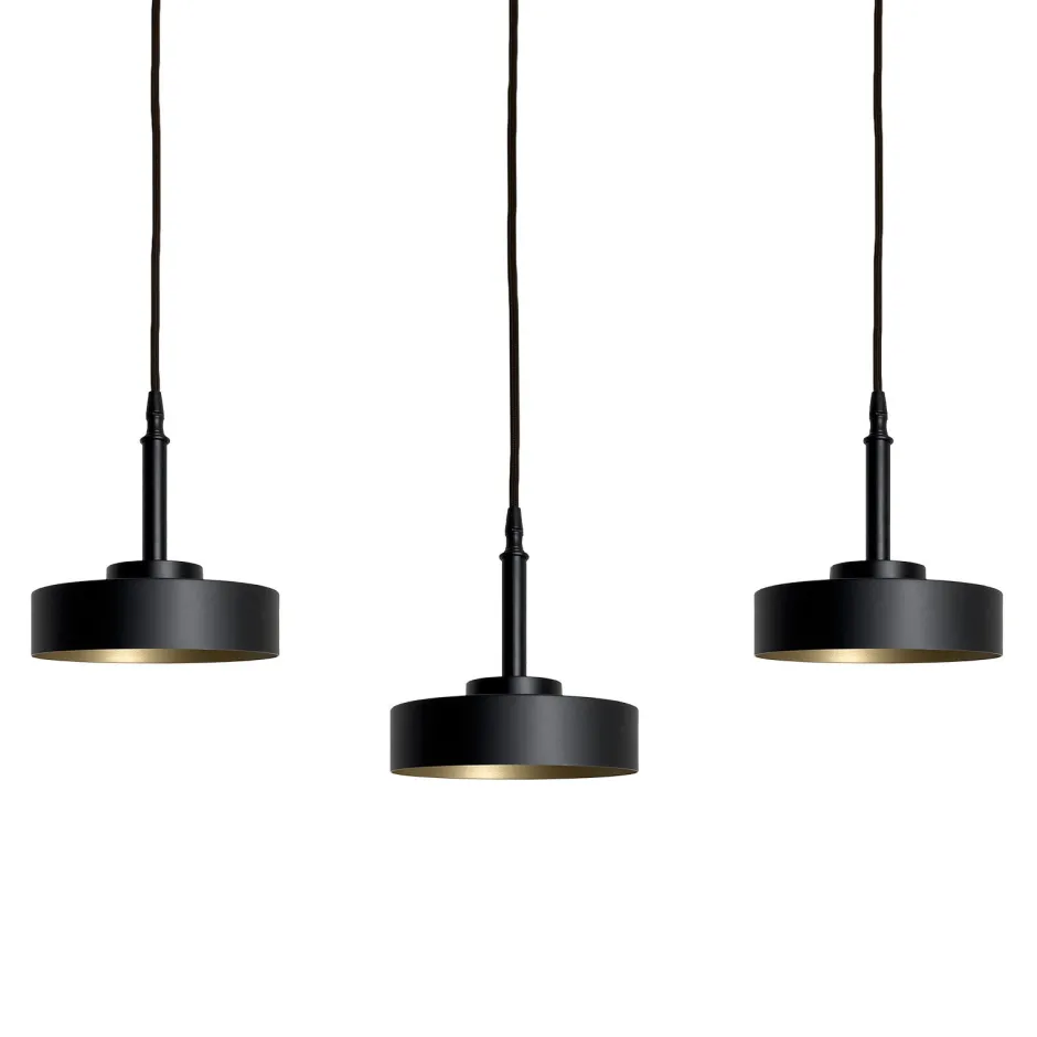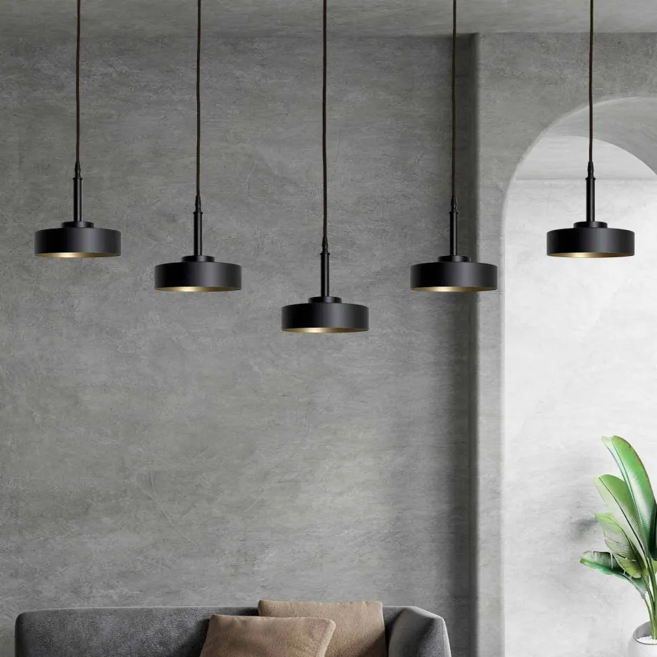 Große Pendelleuchte aus massivem Messing in Schwarz und Gold