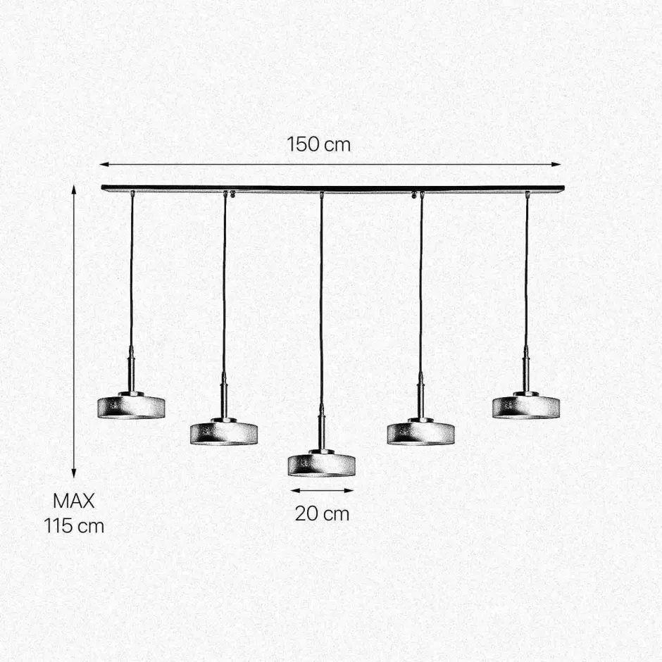 | Maße: | Breite: 200 mm | Hängetiefe: 700-1150 mm | Länge: 1500 mm | Durchmesser Schirm: 200 mm |