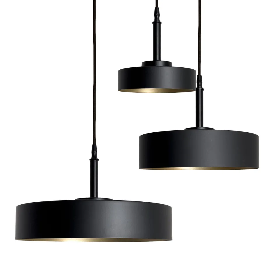 Runde Pendelleuchte aus massivem Messing in Schwarz und Gold