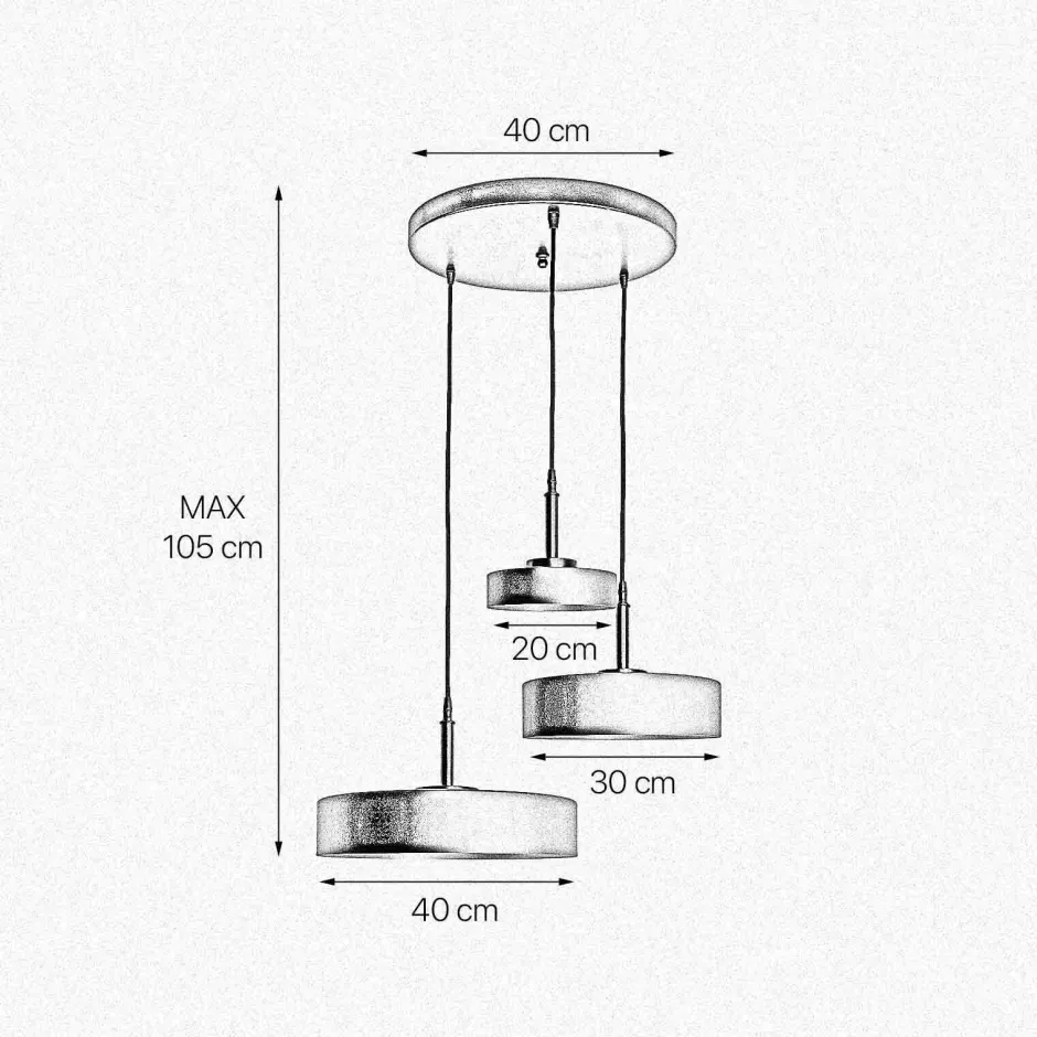 | Maße: | Hängetiefe: 700-1050 mm | Durchmesser Sockel/Wandhalterung: 400 mm |