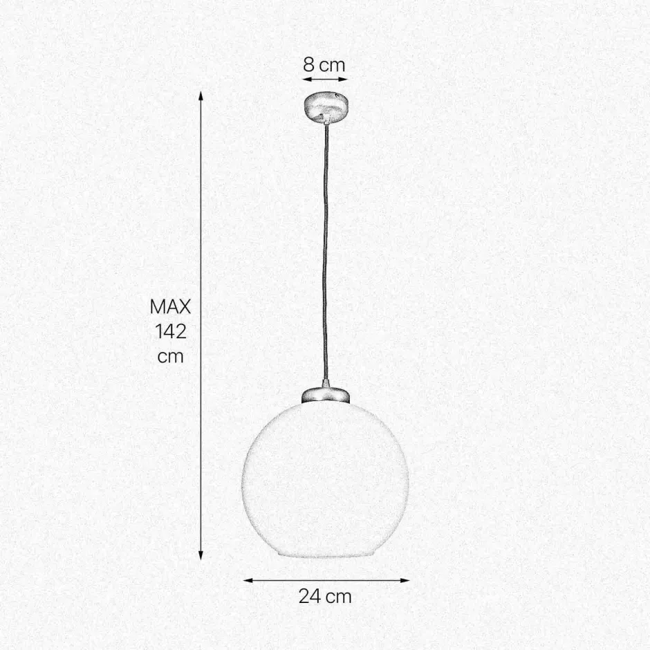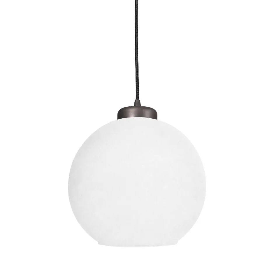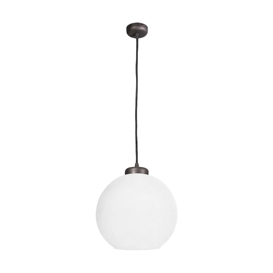 Kleine Pendelleuchte aus massivem Messing mit Kugelschirm aus Glas
