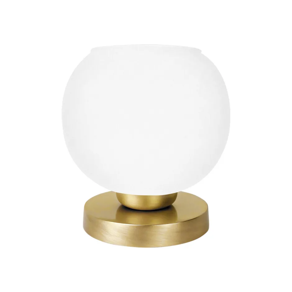 Kleine Tischleuchte aus massivem Messing und Kugelschirm aus Glas