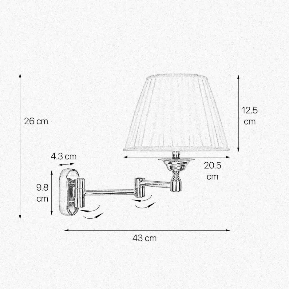 Stilvolle Wandleuchte aus Messing und Stoff mit verstellbarem Arm für Wohnzimmer und Schlafzimmer