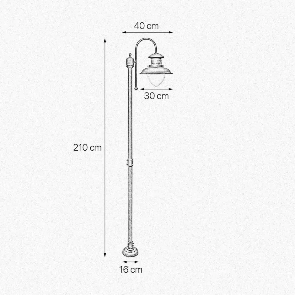 | Maße: | Breite: 400 mm | Höhe: 2100 mm | Durchmesser Schirm: 300 mm | Höhe Schirm: 195 mm | Durchmesser Sockel/Wandhalterung: 160 mm |