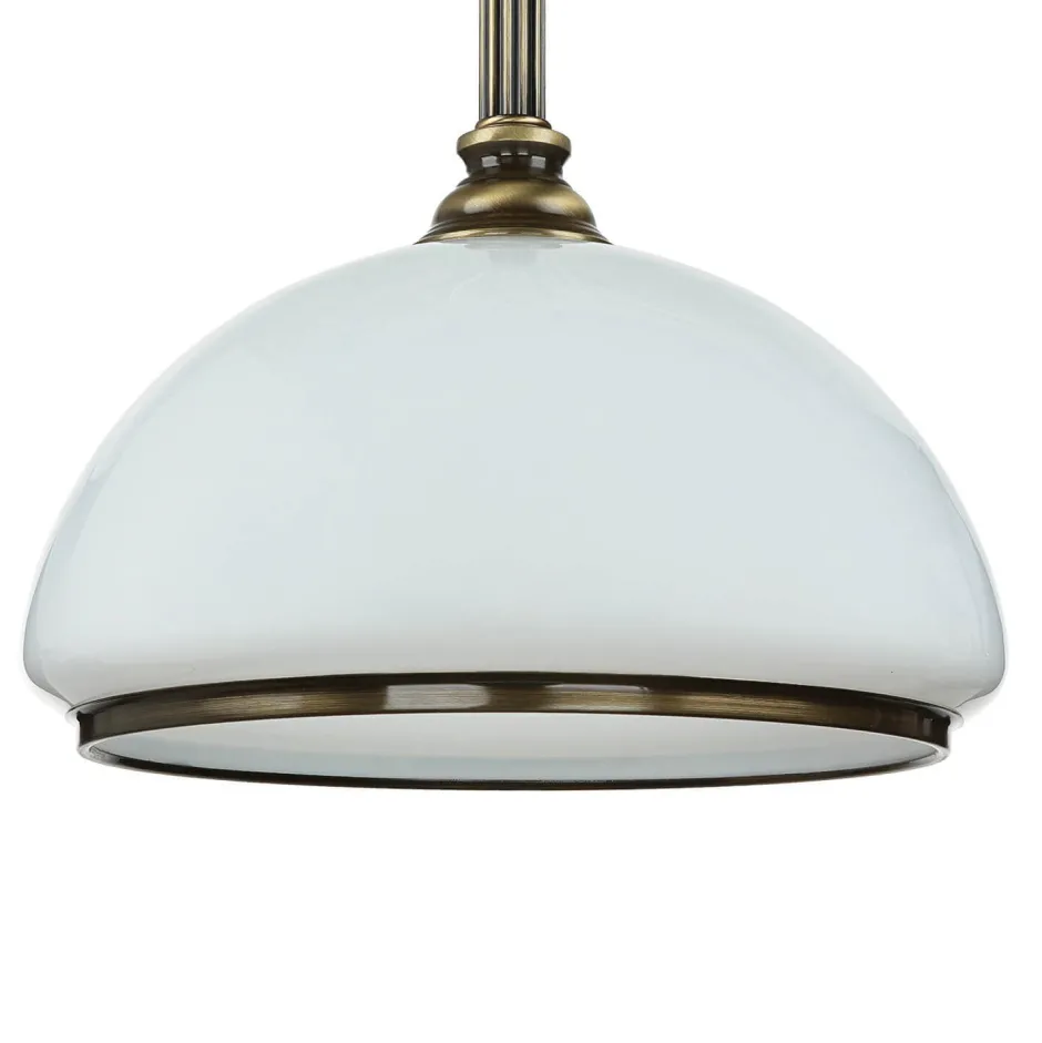 Der Schirm aus weißem Glas sorgt für eine großzügige und blendarme Beleuchtung – ideal über dem Esstisch