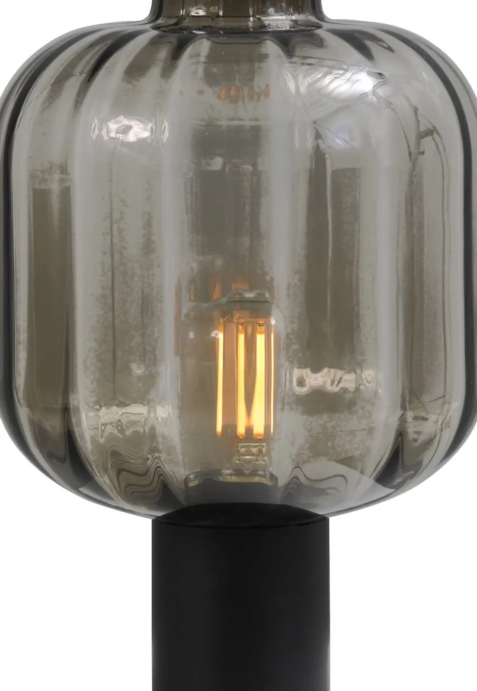 Form und Farbe des Glases verleiht der Tischlampe einen edlen Look, der sich mit vielen Einrichtungsstilen kombinieren lässt