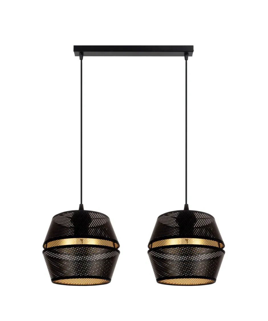 Qualität Made in EU Entdecke die Loft Hängelampe PATBOND – ein stilvolles Highlight für dein Zuhause! Mit ihrem eleganten Design aus schwarzem und goldfarbenem Metall zieht diese Pendelleuchte alle Blicke auf sich. Ihre großzügigen Maße von 900 mm Länge und 500 mm Höhe machen sie zur perfekten Wahl für hohe Decken, während der Durchmesser von 200 mm eine harmonische Lichtverteilung gewährleistet. Die PATBOND Hängelampe ist nicht nur ein echter Blickfang, sondern auch äußerst funktional. Die winzigen Löcher in den Metallschirmen schaffen ein einzigartiges Lichterlebnis, das jeden Raum in einladendes Licht taucht. Ob im Wohnzimmer, in der Küche oder über dem Esstisch – diese Pendelleuchte setzt stilvolle Akzente und sorgt für eine angenehme Atmosphäre. Dank der Möglichkeit, zwei E27 Leuchtmittel bis 60W zu verwenden, kannst du die Lichtstimmung ganz nach deinen Wünschen anpassen. Mit einer IP-Schutzklasse von IP20 ist die Lampe ideal für den Innenbereich geeignet und überzeugt durch ihre Qualität „Made in EU“. Die selbsttragende Kabelaufhängung sorgt für eine einfache Installation und eine sichere Befestigung. Egal, ob du nach einer eleganten Esszimmerlampe, einer modernen Küchenlampe oder einer stilvollen Wohnzimmerlampe suchst – die PATBOND Hängelampe erfüllt all deine Anforderungen. Sie vereint Funktionalität und Design und ist die perfekte Wahl für alle, die Wert auf Qualität und Ästhetik legen. Fazit: Lass dich von der Loft Hängelampe PATBOND inspirieren und bringe mit dieser einzigartigen Pendelleuchte Licht und Stil in dein Zuhause.