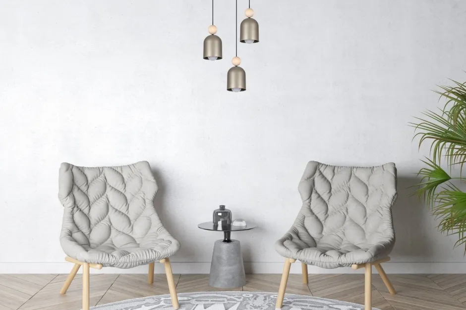 Die Metallschirme in Champagner streuen das Licht gebündelt nach unten