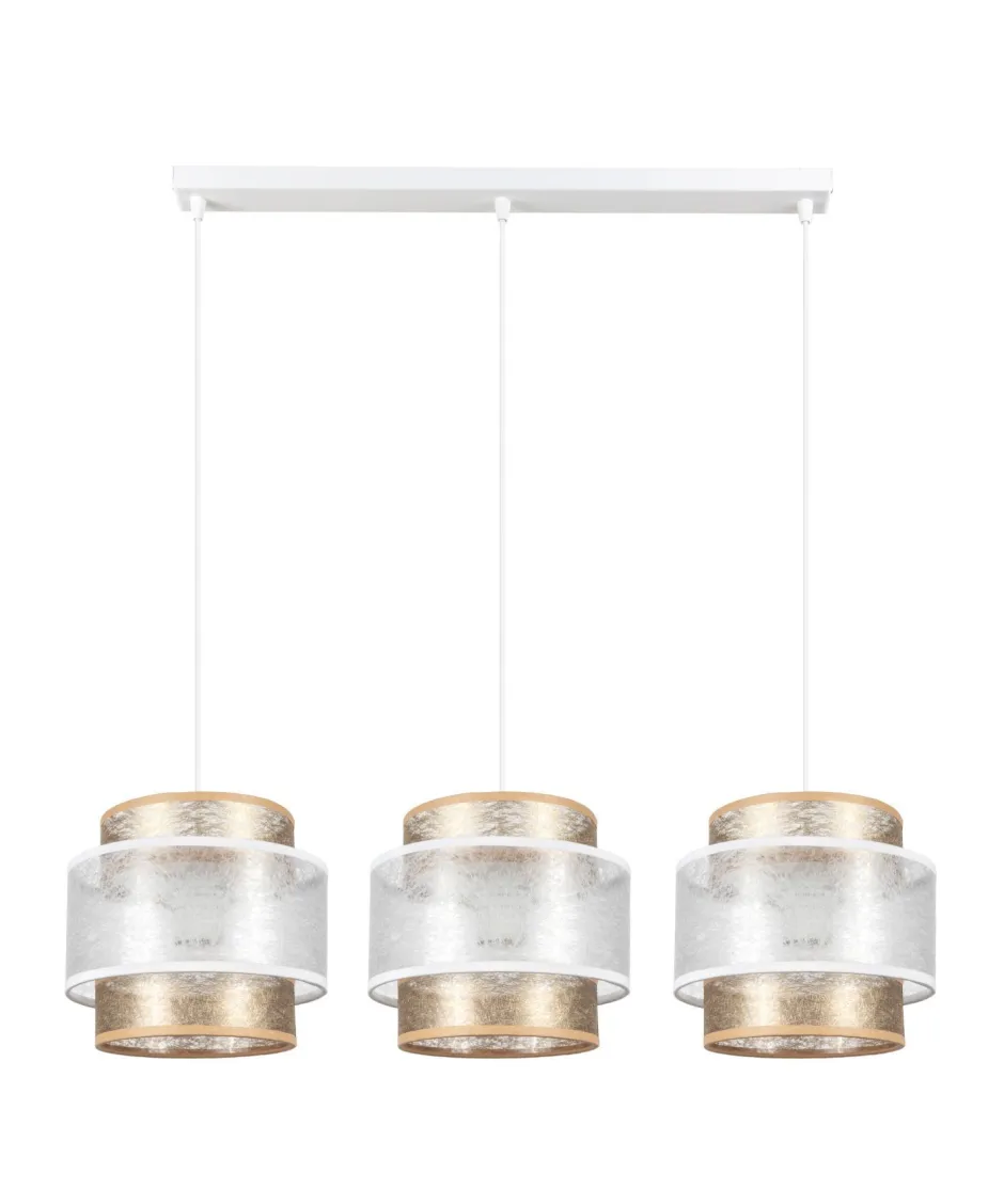 Moderne Hängelampe aus Metall und Stoff in Weiß und Gold