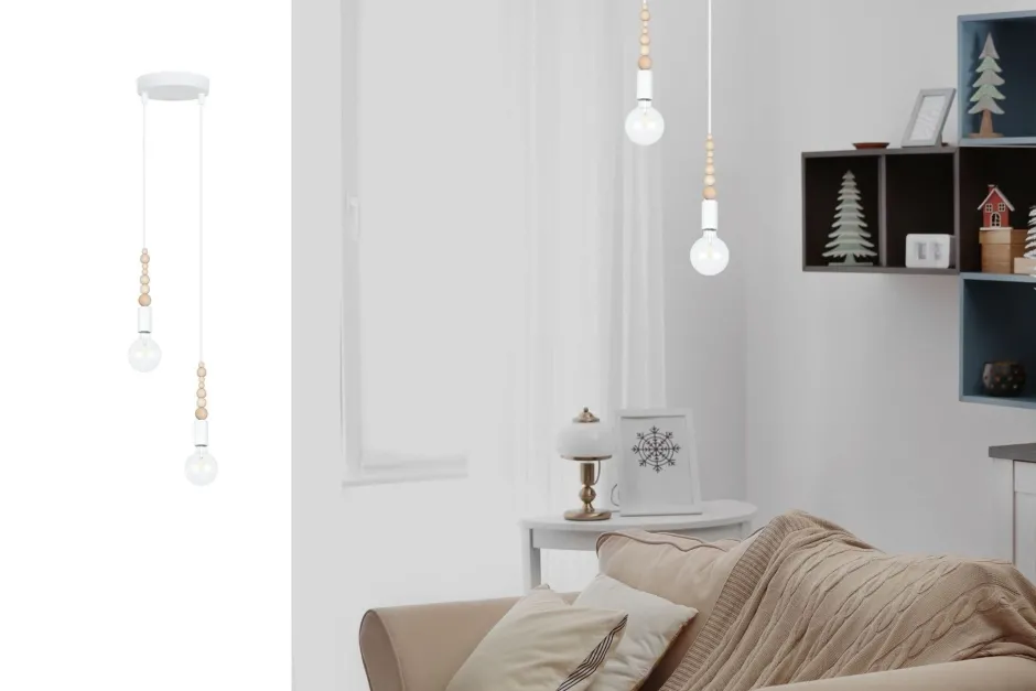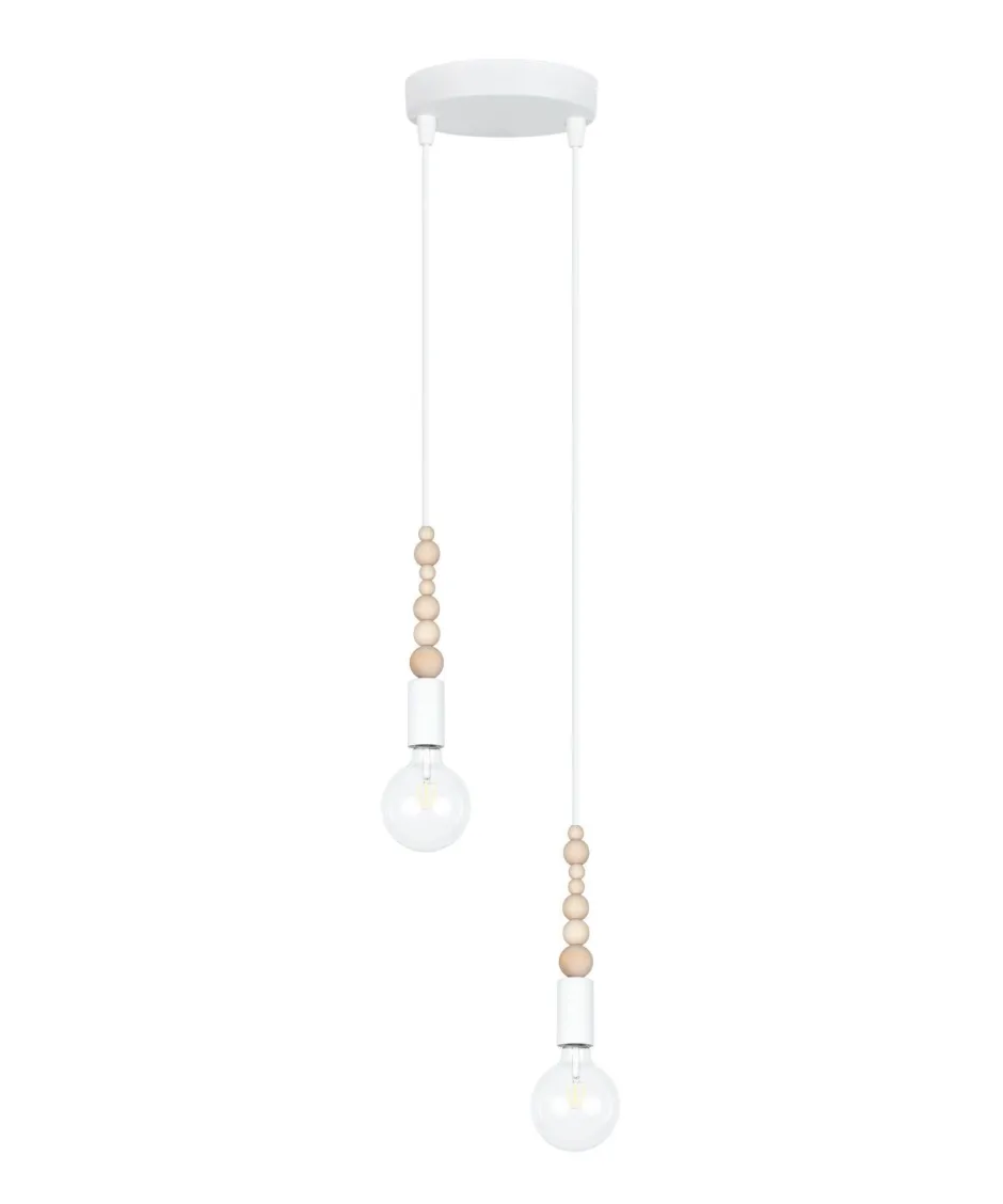 Qualität Made in EU Entdecke die charmante Retro Hängelampe TRUILI, die mit ihrem einzigartigen Design und hochwertigen Materialien jeden Raum in ein stilvolles Ambiente verwandelt. Diese Pendelleuchte aus Metall und Holz in elegantem Weiß ist nicht nur ein Blickfang, sondern auch äußerst funktional. Mit einer Länge von 900 mm und einer Höhe von 140 mm passt sie sowohl in hohe als auch in niedrigere Decken und eignet sich perfekt für dein Wohnzimmer oder Esszimmer. Die TRUILI überzeugt durch ihr schirmloses Design, das die eingesetzten Leuchtmittel in den Vordergrund stellt. So kannst du die Lichtstimmung ganz nach deinem Geschmack gestalten – ob warm und einladend für gesellige Abende oder hell und klar für konzentriertes Arbeiten. Die kleinen Holzkügelchen verleihen der Lampe eine verspielte Note und machen sie zu einem echten Highlight über deinem Esstisch. Mit einer IP-Schutzklasse von IP20 ist die Lampe ideal für den Innenbereich geeignet und wird mit 230V versorgt. Sie ist für zwei E27 Leuchtmittel bis 60W ausgelegt, sodass du die Möglichkeit hast, die Lichtintensität und -farbe individuell anzupassen. Die selbsttragende Aufhängung sorgt für eine einfache Installation und eine sichere Befestigung. Die TRUILI ist nicht nur eine stilvolle Ergänzung für dein Zuhause, sondern auch ein Zeichen für Qualität – Made in EU. Ob du eine Esstischlampe suchst, die Funktionalität und Design vereint, oder eine Wohnzimmerlampe, die mit Holz und Metall harmoniert, die TRUILI wird deinen Ansprüchen gerecht. Fazit: Lass dich von der Retro Hängelampe TRUILI inspirieren und bringe mit dieser Pendelleuchte nicht nur Licht, sondern auch Stil in dein Zuhause. Sie ist die perfekte Wahl für alle, die Wert auf Qualität, Design und eine individuelle Lichtgestaltung legen.