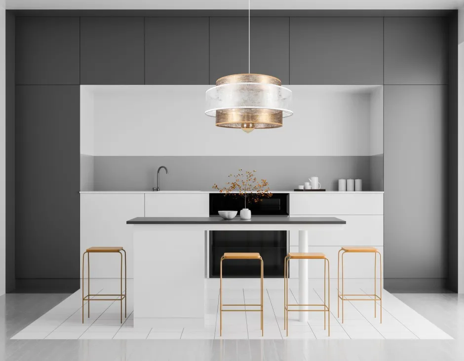 Die Kombination aus Weiß und Gold setzt glanzvolle Statements – hervorragend für Wohnzimmer und Esszimmer (auch in Bars und Restaurants ein Hingucker)