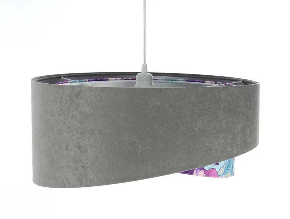 Elegante Pendelleuchte in Grau, Lila, Silber mit farbenfrohem Blumen-Print für Wohnzimmer, Schlafzimmer und Esszimmer