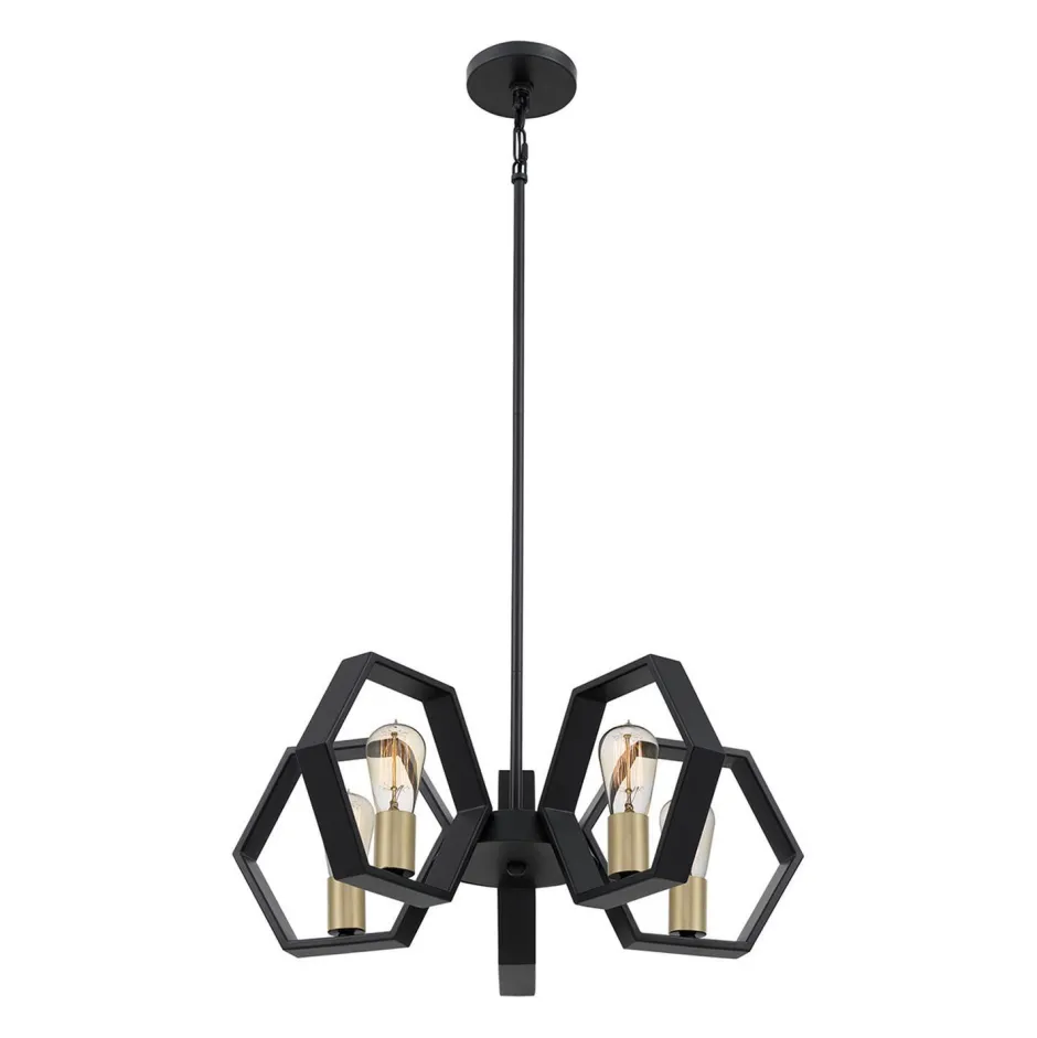 Die hexagonalen Schirme setzten einen außergewöhnlichen Akzent, der aus der langen Hängelampe einen besonderen Blickfang macht