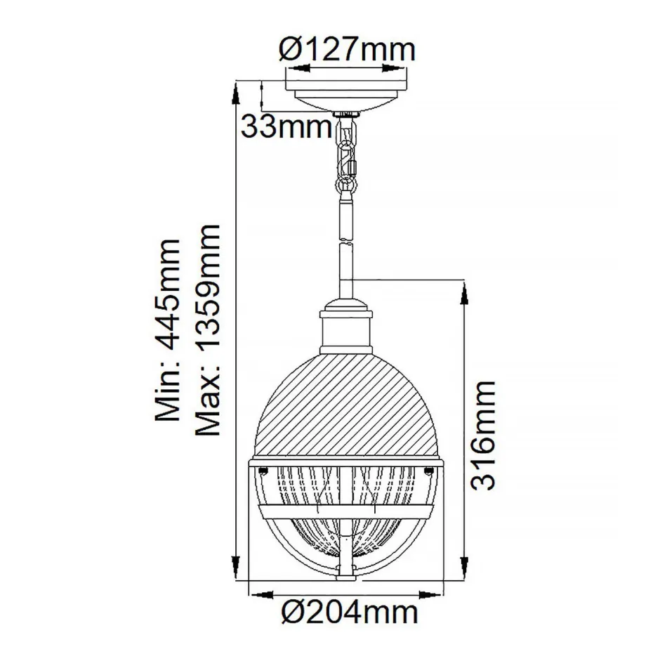 | Maße: | Breite: 204 mm | Hängetiefe: 445-1359 mm | Länge: 204 mm | Durchmesser: 204 mm | Höhe Schirm: 316 mm |