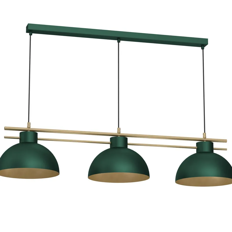 Loft Hängelampe aus lackiertem Stahl in Dunkelgrün und Gold