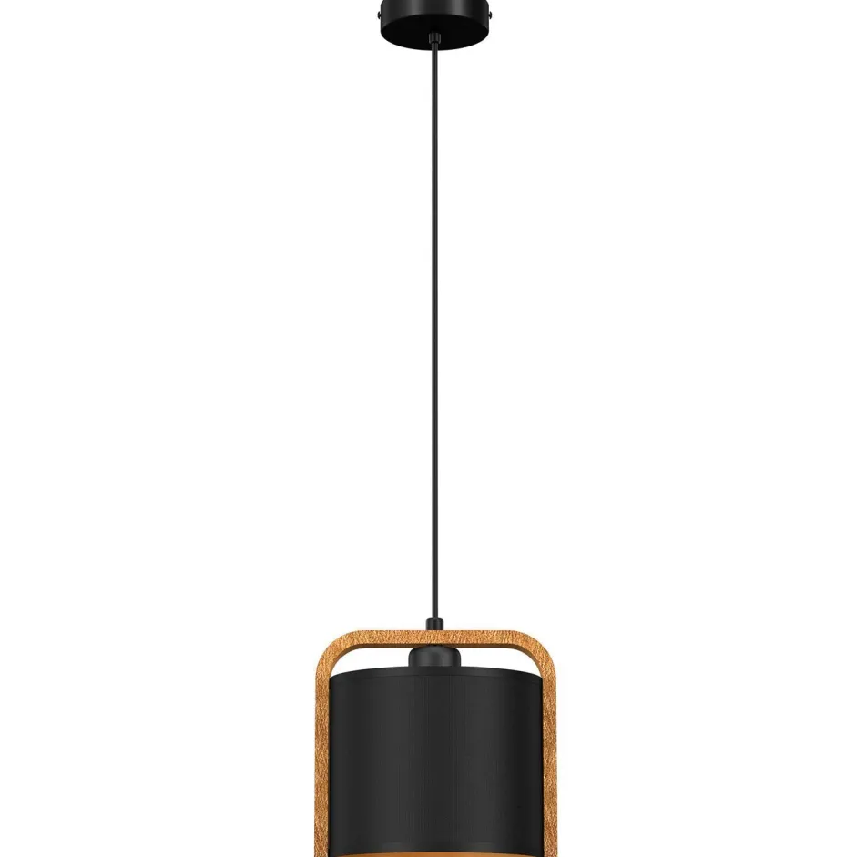 Moderne Pendelleuchte aus lackiertem Stahl, Holz und Stoff in Schwarz