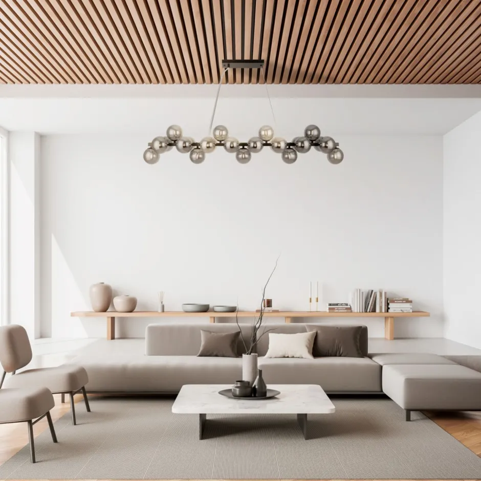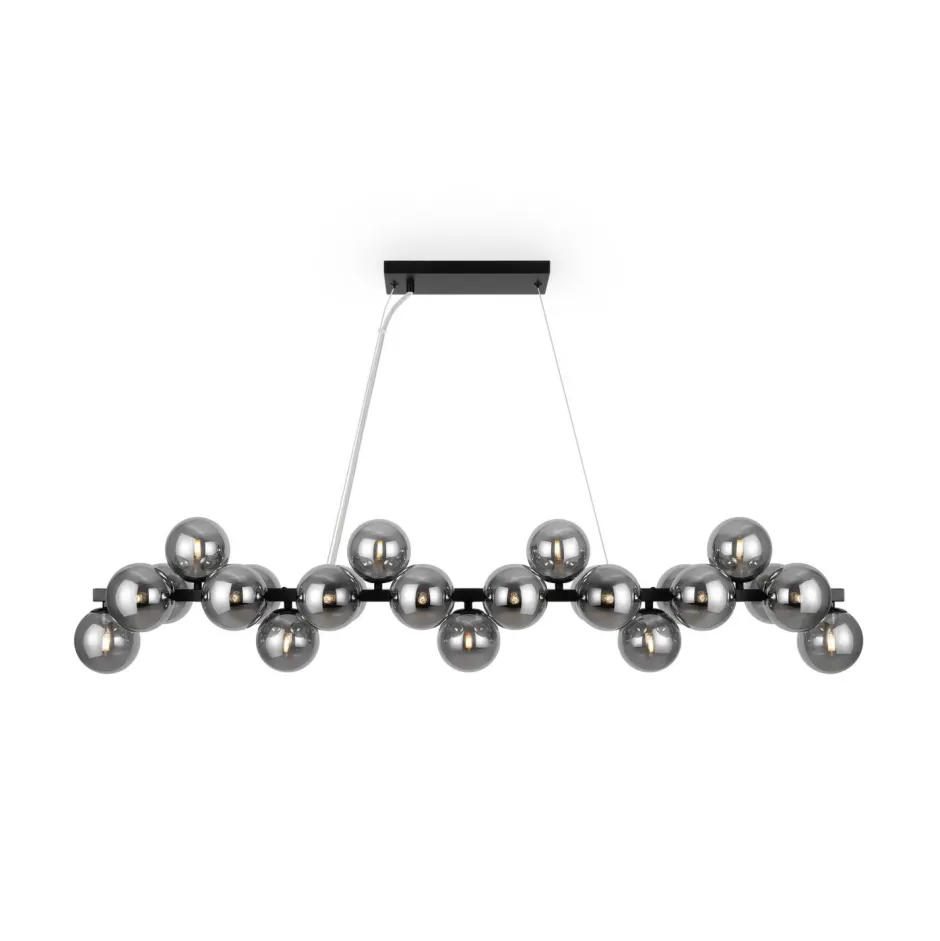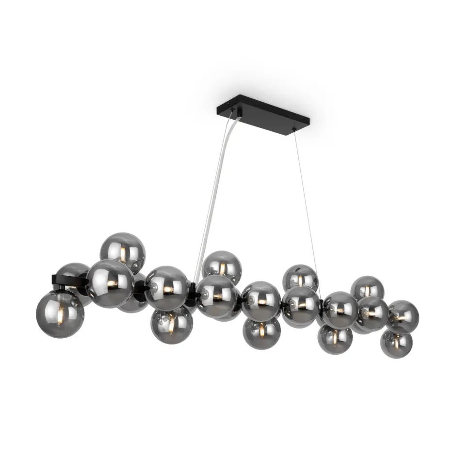 Große Pendelleuchte mit Kugelschirmen aus Rauchglas