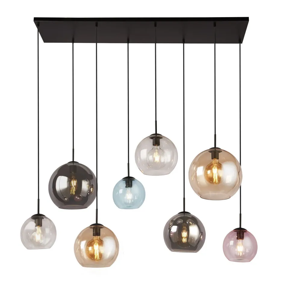 Farbenfrohe Pendelleuchte mit Kugelschirmen aus Glas