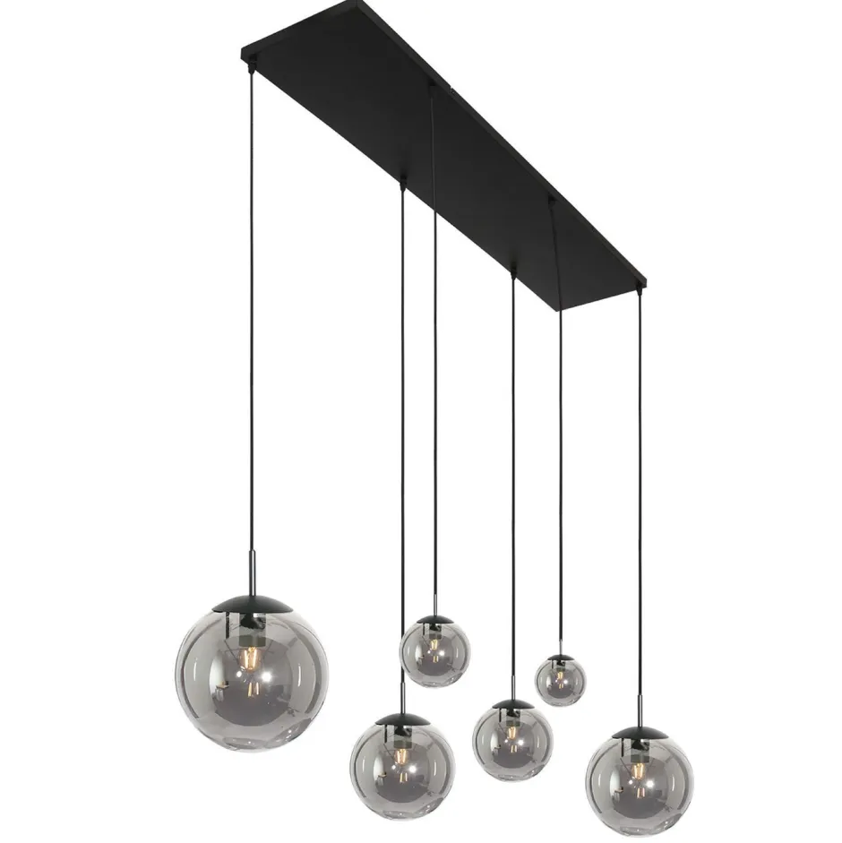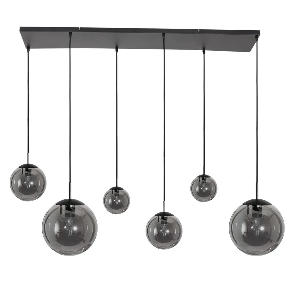 Moderne Pendelleuchte aus Metall und Glas in Schwarz und Rauchgrau