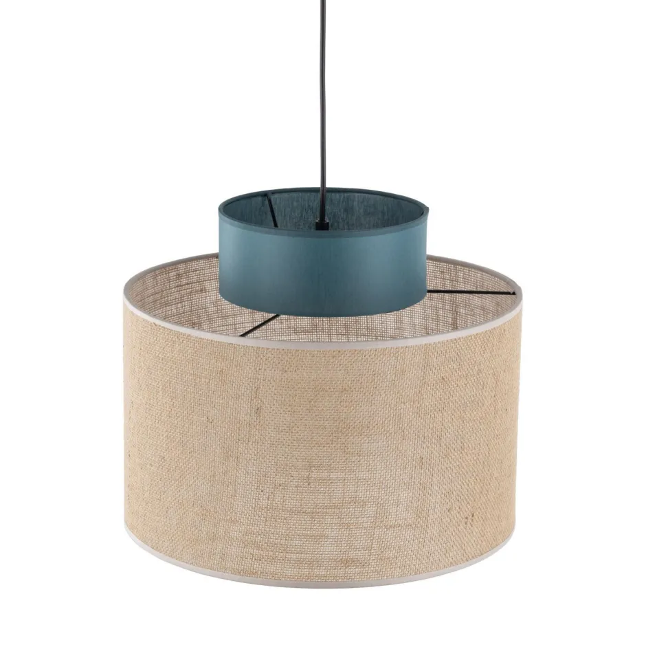 Die Kombination aus Stoff und Jute sorgt für einen wohnlichen Look, was die Hängelampe zu einem vielseitigen Lichtbringer macht