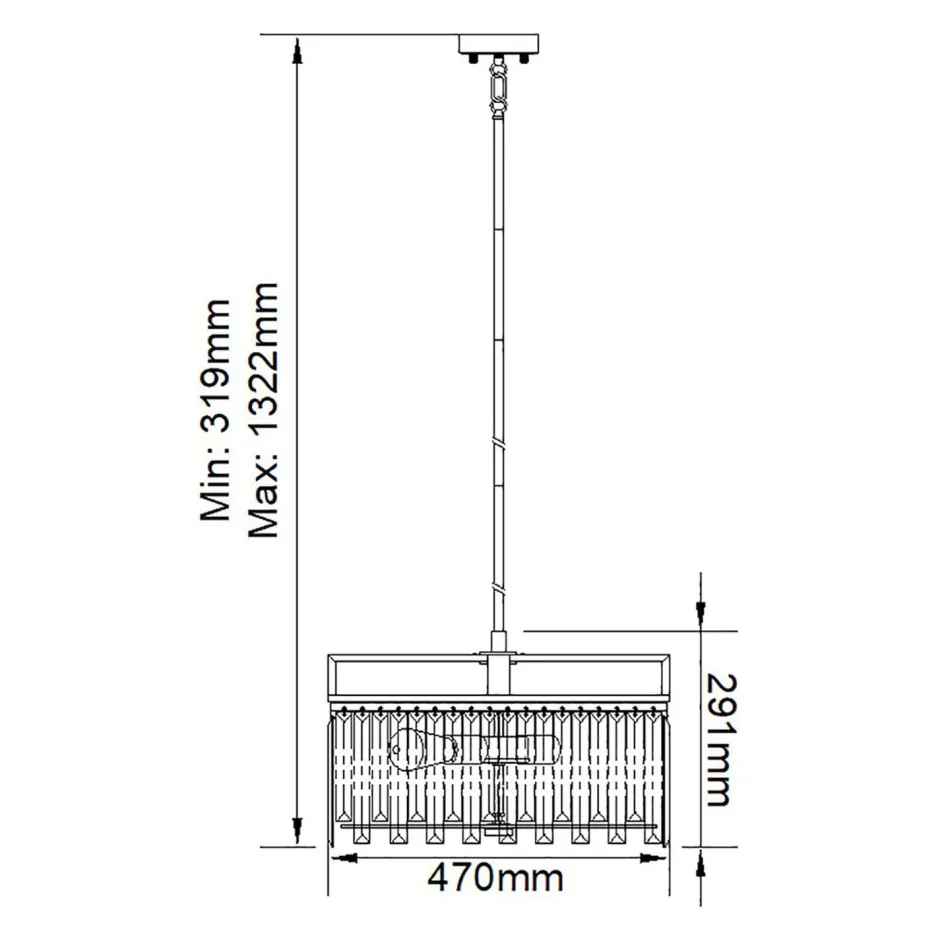 | Maße: | Breite: 470 mm | Hängetiefe: 319-1322 mm | Länge: 470 mm | Höhe Schirm: 291 mm |
