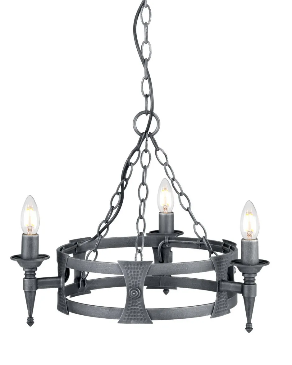 Das rustikale Design erinnert an historische Lüster aus Burgen und Schlössern des Dunklen Zeitalters, was in jedem Raum zu einem dekorativen Blickfang wird