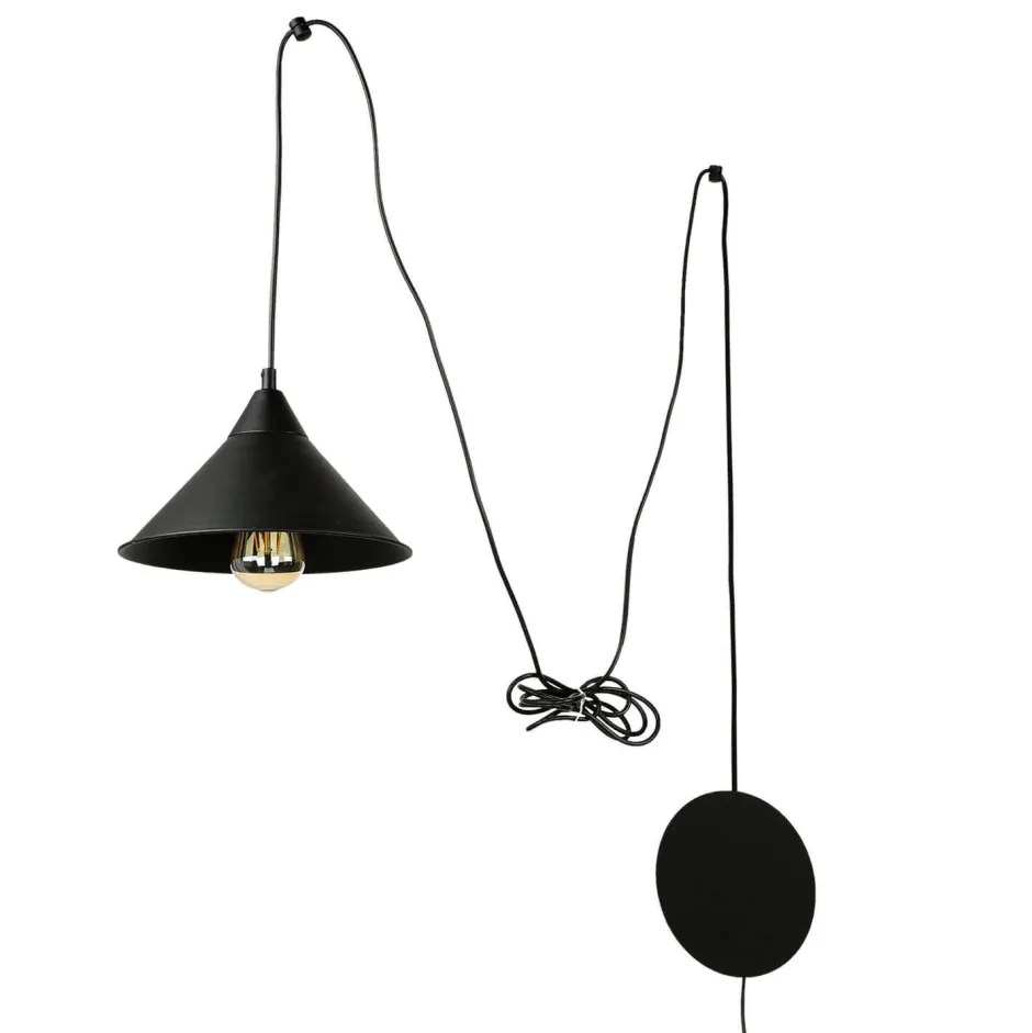 Die Platte wird an der Wand befestigt, das Pendel kann dann frei durch den Raum gespannt werden: perfekt für Räume und dunkle Ecken ohne geeigneten Deckenanschluss