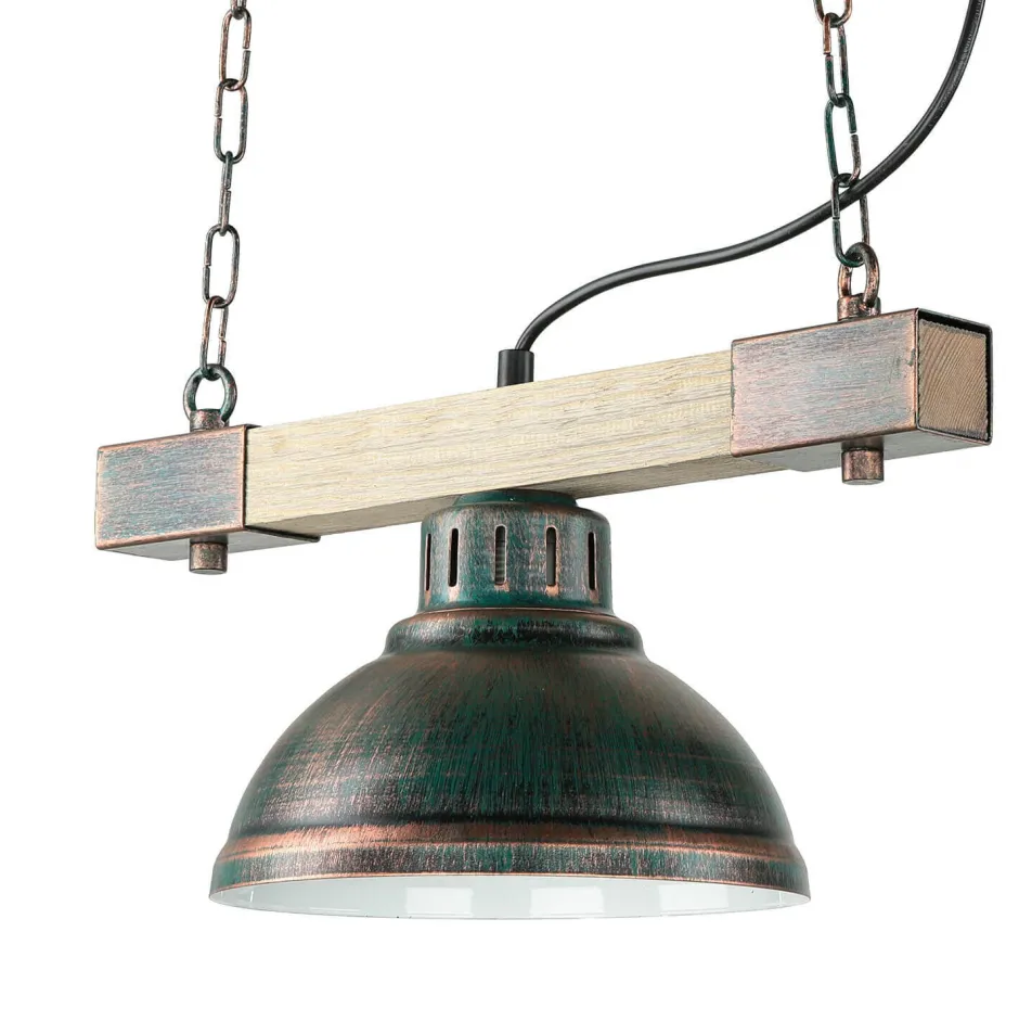 Vintage Hängelampe in der Trendfarbe Kupfer Antik mit Echtholz Element – für ein naturnahes Flair mit individuellem Charakter