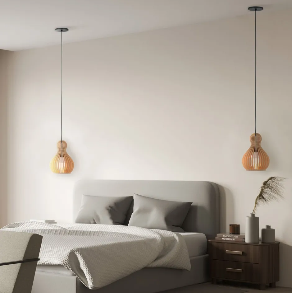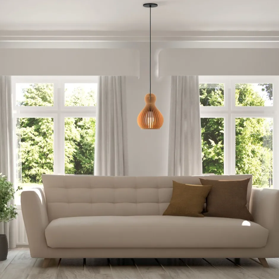 Skandinavische Pendelleuchte mit Holzschirm für Wohnzimmer und Esszimmer