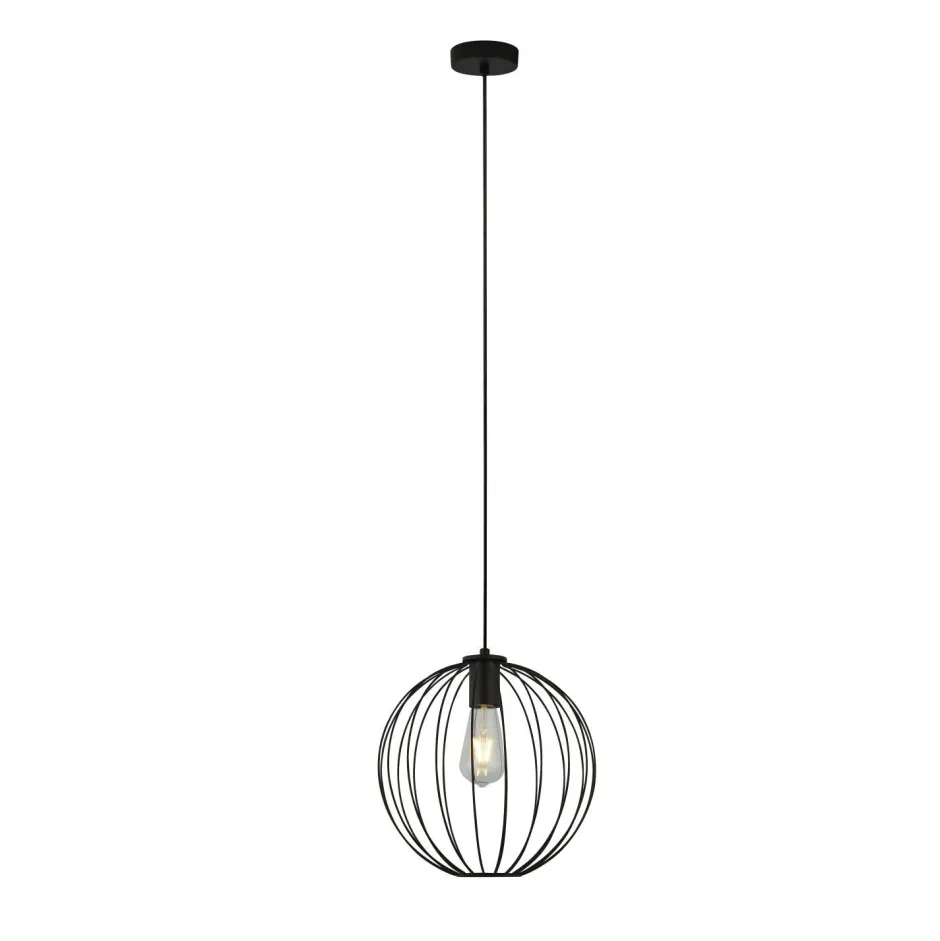 Der offene Kugel Schirm aus Draht sorgt für einen außergewöhnlichen Look und macht aus der Hängeleuchte einen besonderen Blickfang in Wohnzimmer, Esszimmer und Küche