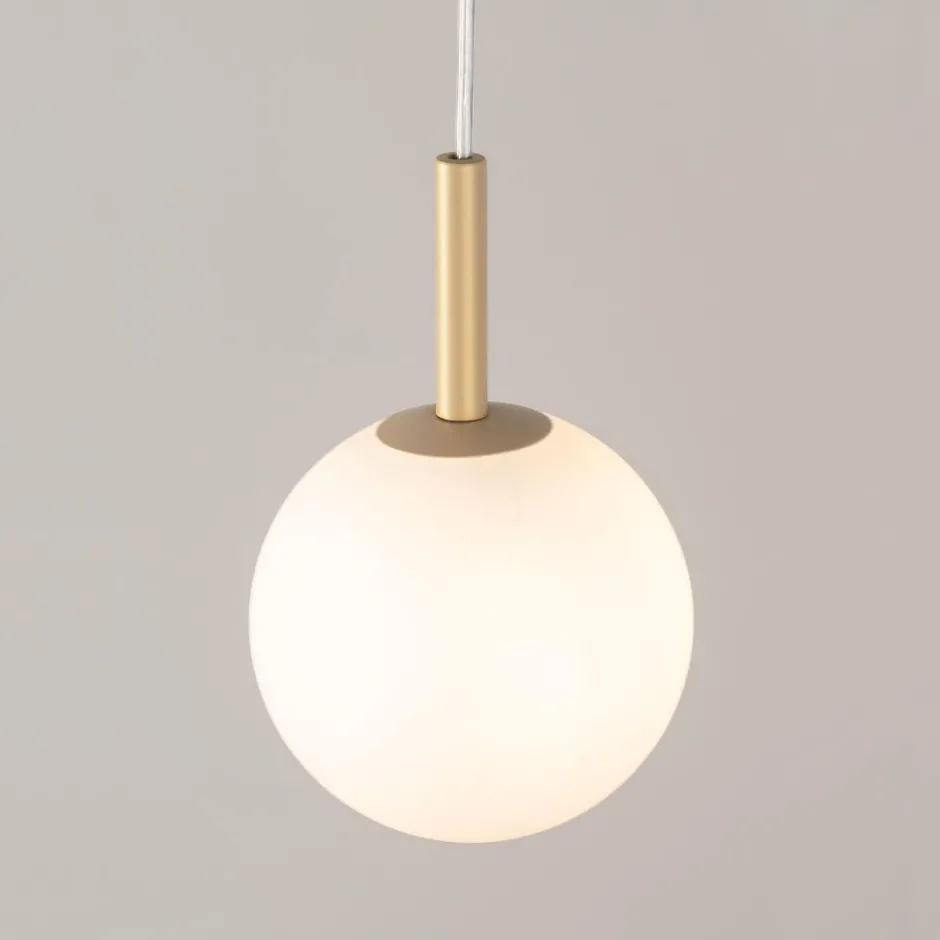Der satinierte Kugelschirm streut das Licht blendarm, sodass eine wohnliche Atmosphäre entsteht